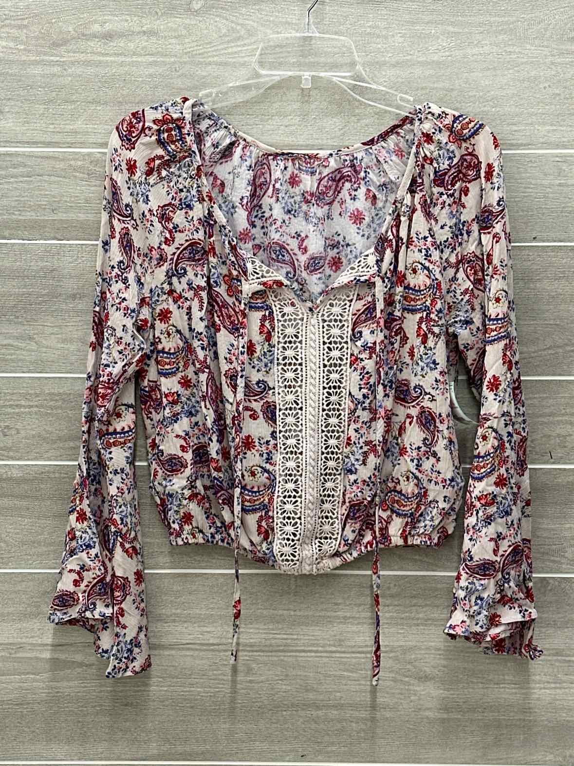 Jrs Red Print Crop Blouse - Bell Sleeves